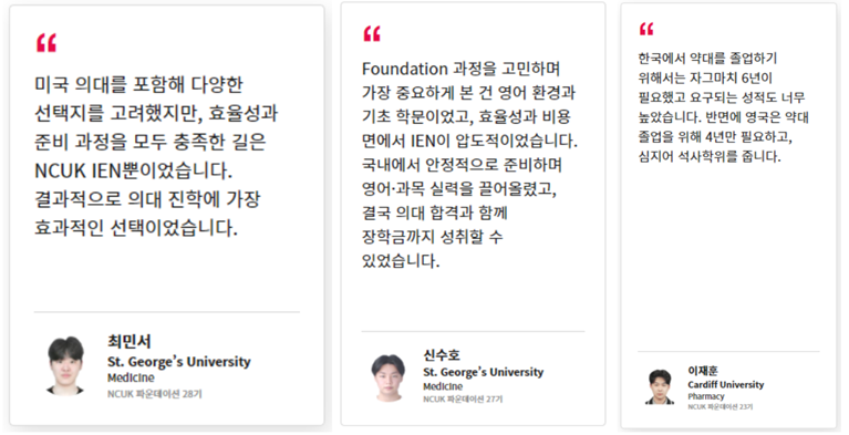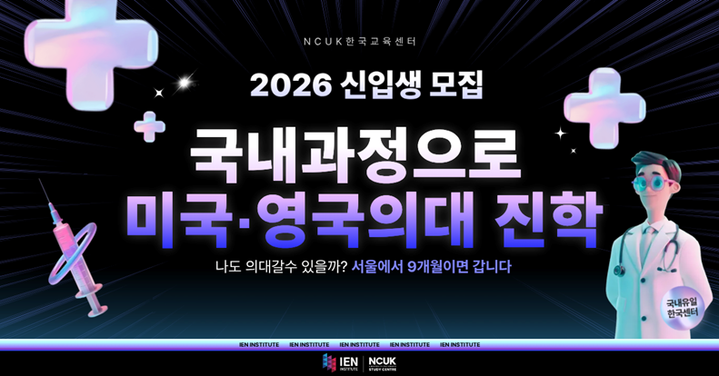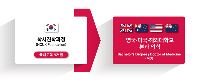 NCUK 국내 파운데이션으로 해외 의대 진학 시 의대 입학시험인 UCAT / MCAT 면제도 가능합니다.