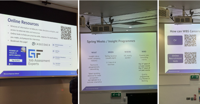 뿐만 아니라 여러 워크숍들을 통해서 1학년 때부터 여러 취업 관련 프로그램에 참여할 수 있게 도와줍니다. 놀랍게도 사진 속 세션들은 모두 Welcome week에 이루어졌으며 저도 제가 수업이 시작하기도 전에 CV를 작성하고 있을 줄 몰랐습니다. 1학년 때부터 Spring week, summer internship 등 가능한 기회들에 모두 참여하도록 많이 도와줍니다.