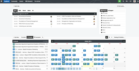 또한, WBS는 소속 학생들을 위한 독립적인 IT 플랫폼을 운영합니다. 다른 워릭 대학 학생들이 'My Warwick' 앱을 사용하는 반면, WBS 학생들은 전용 사이트인 'My.WBS'를 통해 시간표는 물론 커뮤니티 정보, 전문 커리어 개발 자료, 관련 이벤트 소식 등을 통합적으로 제공받습니다.